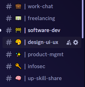 Channels for domain specific discussions such as software development, design, product management, infosec, etc.